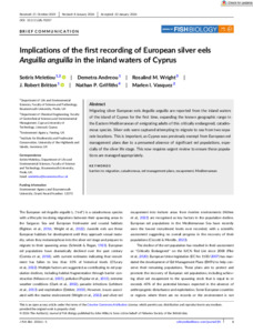 Meletiou, S., Andreou, D., Wright, R. M., Britton, J. R., Griffiths, N. P. and Vasquez, M. I., 2026. Implications of the first recording of European silver eels Anguilla anguilla in the inland waters of Cyprus. Journal of Fish Biology. (In Press)