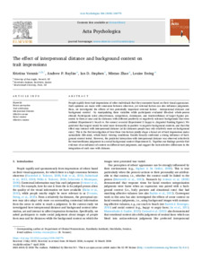 Veranic, K., Bayliss, A. P., Stephen, I. D., Zhao, M. and Ewing, L., 2026. The effect of interpersonal distance and background context on trait impressions. Acta Psychologica, 266, 106770.