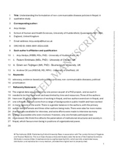 | Uncontrolled Keywords: | Nepal; Non communicable disease; policy; south Asia; policy analysis |