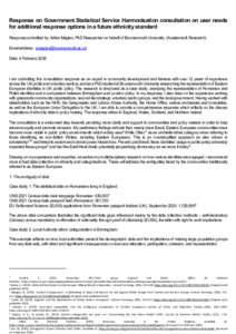 This is a consultation response I submitted as an expert in community development and fairness with over 12 years of experience across the UK public and voluntary sectors, and as a PhD student at Bournemouth University researching the representation of Eastern European identities in UK public policy.